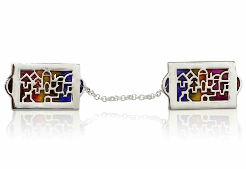 Looking for a modern and stylish way to keep your Tallit in place? Check out our new Jerusalem Walls Tallit Clips! These unique clips are made from 925 sterling silver and feature a colorful enamel background. The modern design of the Jerusalem walls is perfect for any occasion. Whether you’re attending synagogue or celebrating a special event, these Tallit Clips will add a touch of class to your outfit. Order your set today!